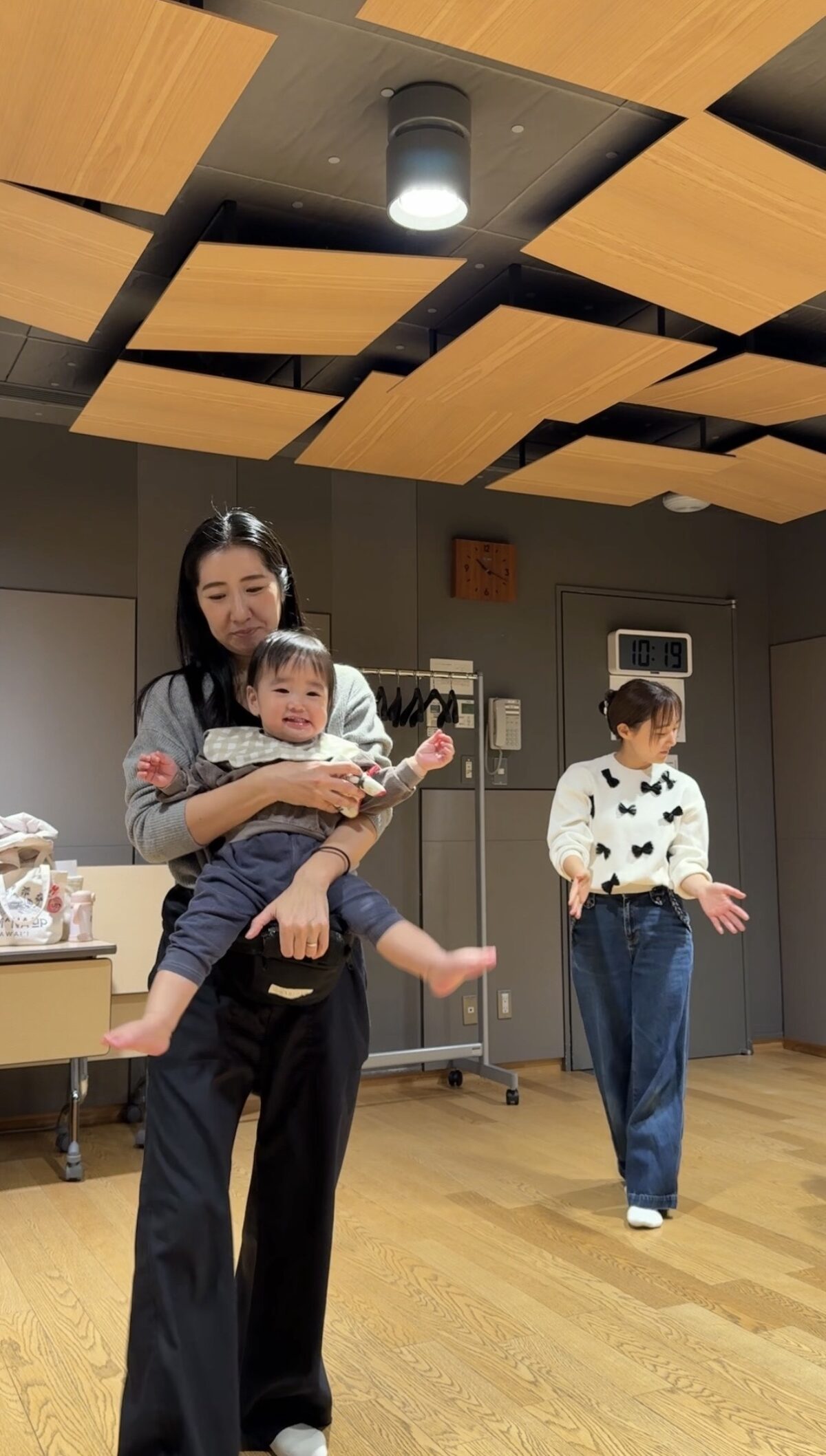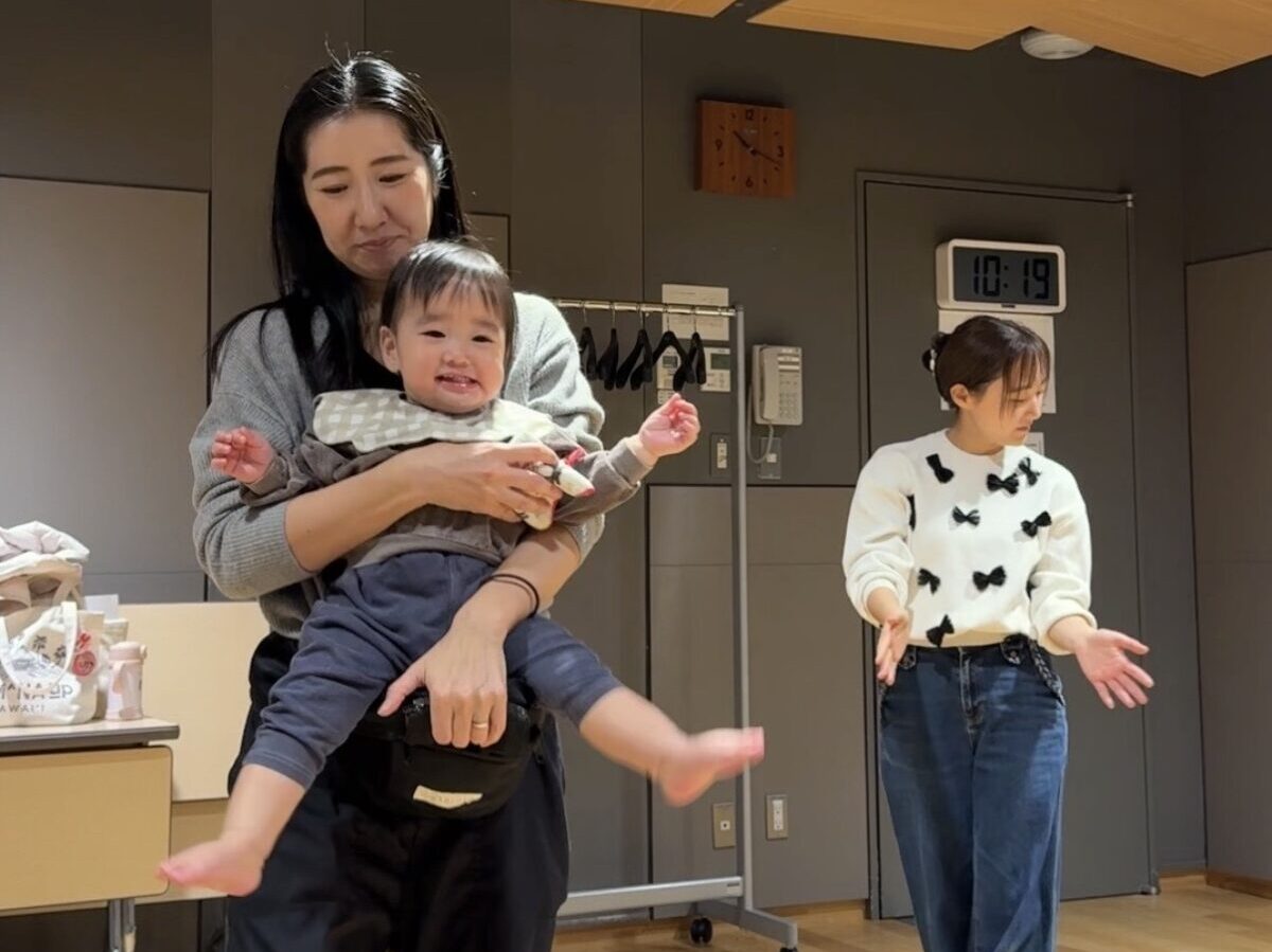 → 抱っこで保護者の方がリズムに合わせて歩いたり、ジャンプしたり、体を揺らしたり。